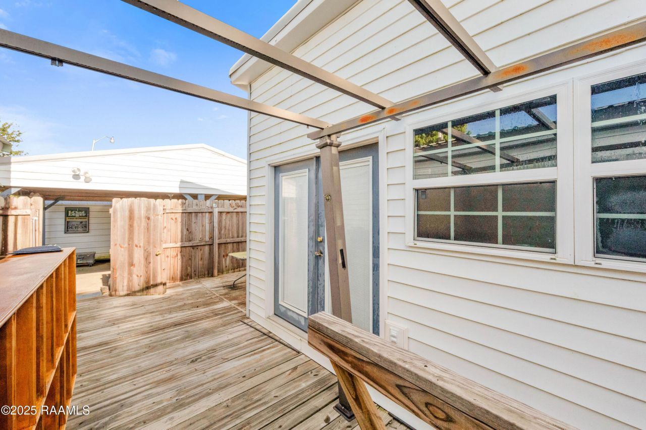 Welcome to Rimrock. A unique 4 bed 3 bath open and split floor plan home on a corner lot. Part of what makes this home so unique is its 3 rectangle construction which gives the home a very practical and desirable layout. With a little TLC, you can bring this home back to life and enjoy all the room it has to offer. Situated on a corner lot there is plenty of room for tinkering with outside toys. Two workshop/sheds are included also for added storage. Situated in flood zone X and never flooded. Zoned for Westside Elementary, Scott Middle and Acadiana High. Make your appointment to view this home with tons of potential and character today.