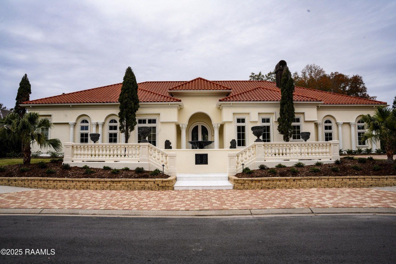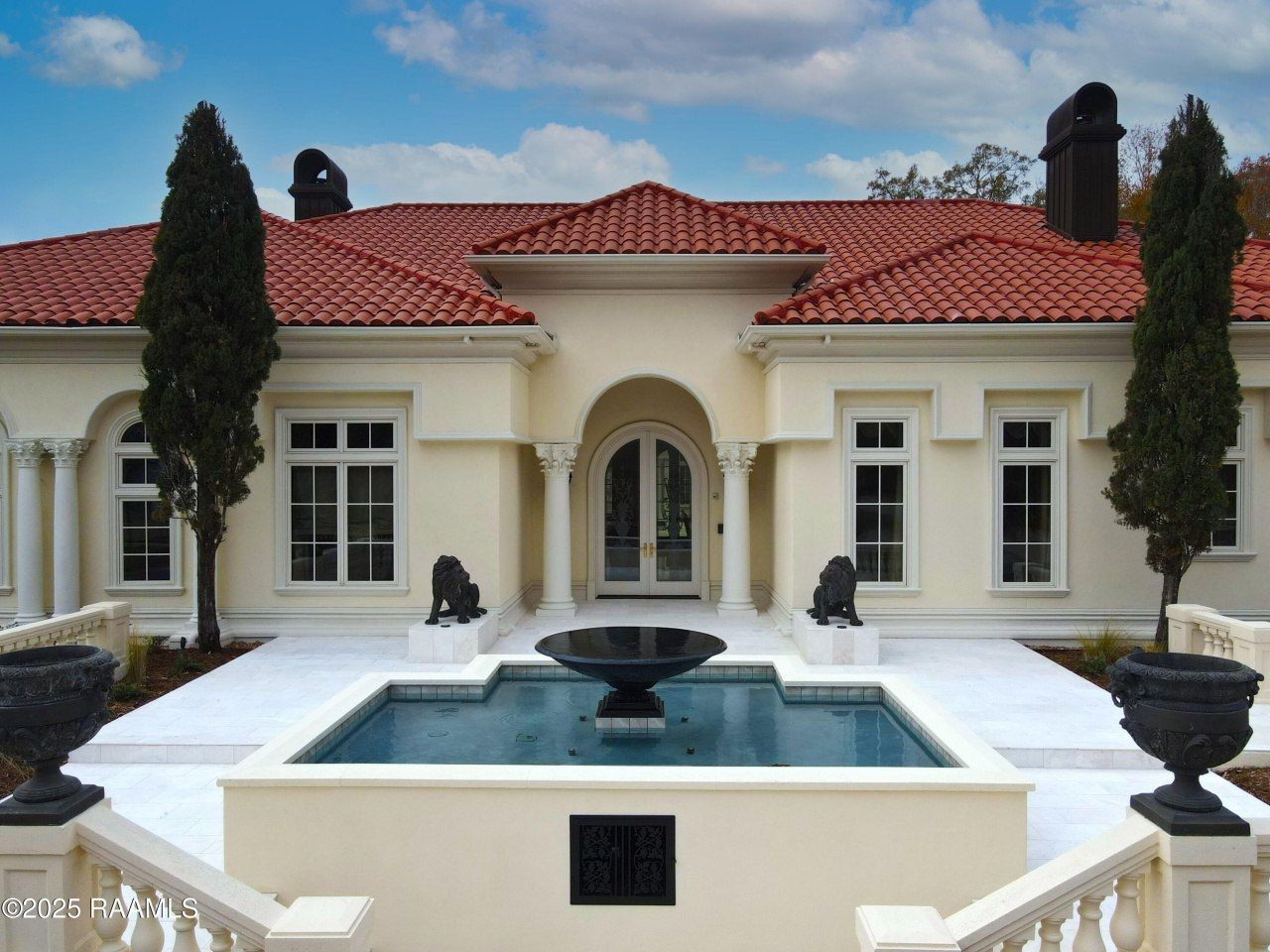 This breathtaking Mediterranean-inspired estate presents unparalleled luxury and sophistication across a sprawling 7,200 square feet. It features 1,000sf primary suite with his/her baths, 3 guest rooms with private baths and an apartment/flex space upstairs offering bedroom, full bath and living area. The formal living and dining area is dressed in soaring ceilings, dramatic columns with 24k gold leaf details, intricate hand lay marble floors and a grand foyer featuring archways of crystal chandeliers. 2 kitchens, 2 bars, 300 gallon fish tank, multiple water features including gunite pool, outdoor work out/recreation room with full bath, 3 car garage with hydraulic attic lift and home technology system are just a few of the extraordinary amenities of this home, perfect for the discerning buyer who desires privacy and grandeur in an iconic setting.