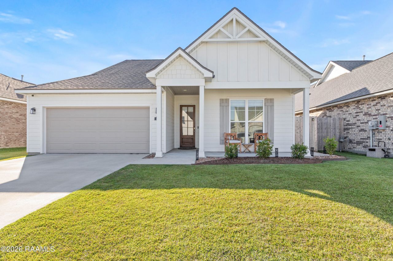 Step into this better-than-new home located on a quiet cul-de-sac. This property sits on a premium pond lot, offering exquisite and private views. Freshly painted interior, fresh and inviting vibes await you. This welcoming foyer invites you into the a large living room featuring a coffered tray ceiling with a ventless gas fireplace. The open modern kitchen includes a gas range with stainless steel appliances, custom black out Roman shade window treatments, new refrigerator to remain, under-mount sink, quartz countertops, custom built wooden cabinets, walk-in pantry, beautiful light fixtures, wood laminate and tile throughout. Washer, dryer and new wall mounted TV to remain with the home. This home is truly move in ready! Outside you will find a patio with extensive views and a custom playground to remain with the home. Extended cement poured on the side of the house leads guest to the large welcoming backyard with fountain views Four video surveillance cameras to remain and a fenced in yard make entertaining and enjoying this home a peaceful retreat for all. Schedule your showing today!