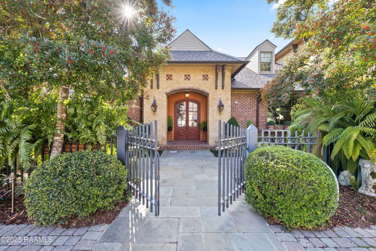 Quality surrounds you in this custom home built by Mark Laborde and designed by Barry LeBlanc with Gossen Architects. 104 Ducharme Court is nestled in a quiet no outlet cul-de-sac and offers beautiful finishes both inside and out! Upon entering the front courtyard, you will notice established landscaping, Pennsylvania bluestone tile, copper gutters and custom designed gas lanterns. The foyer includes Saltillo tiles inlaid among grids of old pine. A dramatic brick archway opens the foyer into the living room. The open floor plan works perfectly for todays lifestyle & creates the heart of the home which is warm and inviting. Quality craftsmanship is evident throughout the home. The kitchen has an eat at island with a prep sink, granite countertops and a large window overlooking the front courtyard with lush landscaping & old sugar kettle fountain. The living room includes a massive masonry fireplace with a wrap-around cypress mantel & is accented with old cypress beams on ceilings & doorways adding a special ambiance to the room. Tall glass windows offer views into two fabulous courtyards including the main courtyard which features a stunning antique bronze fountain over 100 years old. The primary bedroom is located on the main level and includes his and hers separate baths and closets. The formal dining room has tall windows & a door allowing access into the side courtyard. A second bedroom with access to a full bath is also located on the main level. All bedrooms are finished with antique pine flooring. The views from every room in this home are incredible! Upstairs are bedrooms three and four with a shared Jack & Jill bath. This home has walk-in attic access with spacious storage space. The home includes a new roof installed in November of 2025. Underground drainage surrounds the property. This home has been meticulously maintained and is in move in condition for its new owners! Call for a showing today!