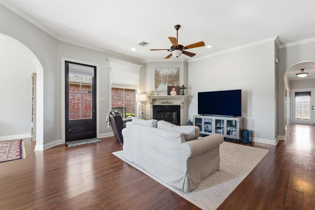 COMPACT LUXURY IN WINDSOR COURT! Come see this custom built, BRICK PATIO HOME in the Windsor Court Subdivision. 1056 Richmond Circle provides all the amenities you could want with low maintenance. Landscaped with a two door electric garage, gated courtyard and covered back patio, this classic brick home with French character and big beautiful windows features a fine 3 bed, 2 bath interior with wood floors, granite countertops, elegant built-ins, living room with gas fireplace open to a kitchen with island bar and stainless steel appliances, separate dining room and a lovely master suite with french door accessing back patio. A particularly special design element is the brick archway connecting the kitchen/breakfast area with the living room. Kitchen is super functional and includes a GAS COOKTOP and large walk-in pantry. Master bath is fully equipped with a soaking tub, walk-in shower, large two-sink vanity and walk-in closet. Laundry room is spacious with counter space and storage. The backyard and covered patio is a pleasant and relaxing space to enjoy the outdoors with minimal grass to mow. FLOOD ZONE X! LOW HOA FEE! All measurements are more or less.