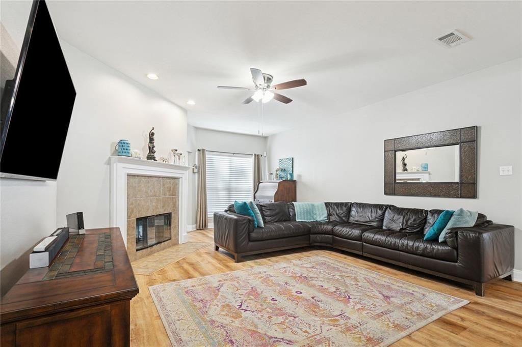 Welcome to this beautifully appointed 4-bedroom, 2.5-bath home offering an expansive and thoughtfully designed floor plan ideal for both everyday living and entertaining. The spacious living room is anchored by a charming wood-burning fireplace and flows seamlessly into the formal dining area, creating an inviting setting for gatherings. The new flooring is a showstopper! The generously sized kitchen features granite countertops, stainless steel appliances, and ample cabinetry, and opens effortlessly to an oversized den, perfect for relaxed family living or hosting guests. The primary suite is privately situated on the east side of the home and serves as a true retreat, complete with a spa-inspired en-suite bathroom featuring dual vanities, a walk-in shower, a large tub, and a large walk-in closet. Three additional bedrooms, each with walk-in closets, are located on the opposite side of the home and share a well-appointed full bathroom, offering comfort and privacy for family or guests alike. Step outside to enjoy the large, fully fenced backyard, which backs up to a wooded area for added privacy, an ideal backdrop for outdoor entertaining, play, or quiet relaxation. HVAC 2025, Water Heater 2022 and newly painted in 2025!