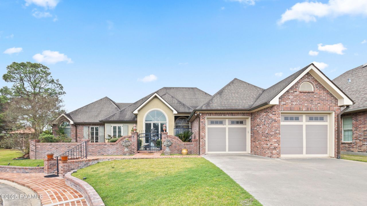 Gorgeous custom-built home located in the gated Shadows Bend community. This spacious 3-bedroom, 3-bath home includes two offices and an open-concept living, dining, and kitchen area with an island--perfect for entertaining. The dining space features two stunning chandeliers and a built-in buffet/china hutch. Architectural highlights include barrel-vault ceilings, arched openings, and a beveled leaded-glass front door. Two enclosed areas overlook a propane-powered fireplace, Interior finishes include brick pavers in the kitchen and butlers pantry, and real wood flooring throughout the main living areas. All appliances remain. Guest bathroom features designer wallpaper and an artist-designed Kohler sink. Home includes three separate attic spaces. There is abundant storage space in this home. There are two A/C units (one under a 10-year warranty), 35 kW whole-home generator with transfer switch, multiple water heaters (attic, bathroom, garage). . Exterior features include an outdoor kitchen with propane, two outdoor storage closets, operational shutters, plywood window coverings, bronze pots, landscape pots, and a gorgeous water-feature statue. Garage offers abundant storage as well. Meticulously maintained custom home. The lot next door is available to buy with the home or separately. The gazebo in the back of the property is located on the lot next door. *The vacant lot next door is available to buy with the home or separately. See MLS#2500005741 for lot information.