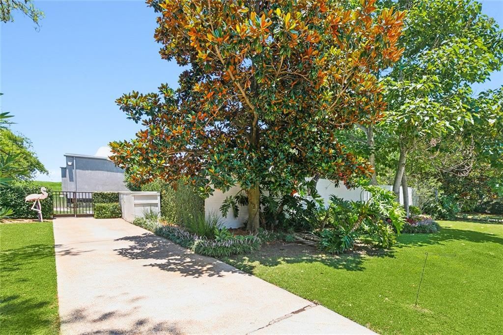 Architecturally significant Lake Vista home on desirable Swan Street overlooking the levee and Lake Pontchartrain. Spacious with modern sensibilities and artistic flair, the home sits on a rare 150 x 150 double lot. 12-foot teak panel walls swing to combine the walled living room with the family room into one large room with glass walls. Three generations of New Orleanians have known it as the house with moving walls. Designed by acclaimed architect and Tulane professor Charles Colbert in 1960, the home is a marvelous example of Modernistic design with museum style interiors. The home design is symmetrical and creative - right and left sides mirror each other with room placement. Soaring ceilings with skylights and multiple windows bring the sunshine in! A hyper-modern kitchen with all the bells, whistles and handsome looks includes a wrap-around center-island breakfast bar, walls of custom cabinets, all stainless professional appliances, drop-pendant lighting and a separate nook for coffee prep or bar items. Bring your largest dining table for the dining room, with a home like this one, you'll surely be entertaining! An office and a second studio/office offer the ability to work and play without leaving home! The owner's suite features a large bedroom adjacent to ample double closets, luxurious bath with glass spa shower and separate jacuzzi tub. Call your guests and spread out to the 3 upstairs bedrooms. You will love the brick flooring in the living areas and hardwood floors with cherry accents in the bedrooms and upstairs hall. Enter into this special property through an imposing brick privacy fence leading to an oasis of professionally landscaped hidden gardens and a resort-style pool area with shady gathering spots. Well cared for mature gardens surround the home. There is even a separate kitchenette adjacent to the pool area for party prep and evening snacks. Two rooms also open to the pool area for your beloved pets or storage. Two ample driveways make parking a breeze. You simply can't fail with this one! All your top home goals -- and even a few you didn't know you had -- wrapped up in one gorgeous package.
