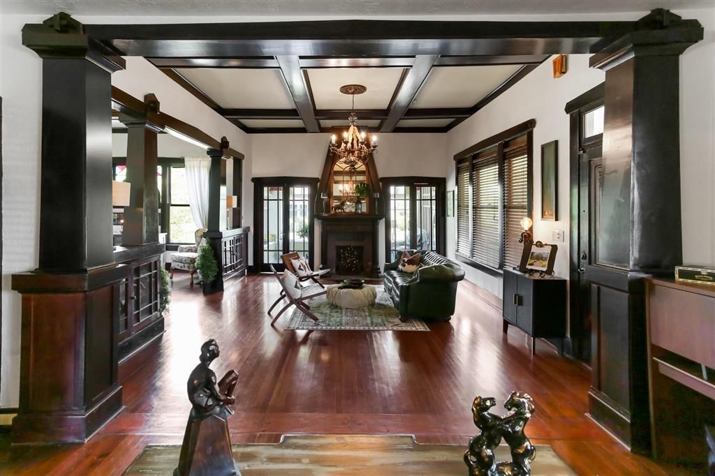 Situated in the Margaret Place Historic District and located in a mixed-use area, this structure can either be a home or an office. An Arts & Crafts Bungalow, this home features period details like leaded glass, stained glass, wood floors and fireplaces. The home includes a formal living room, dining room, a sunroom, bonus living space that could serve as an additional bedroom. The primary bedroom is on the first level and features a coffered ceiling, a luxurious bathroom and a walk-in closet. Located upstairs are three more bedrooms, a living room area and a full bath. Located near a highly sought-after private school. Home was previously staged so both sets of photos are included in the gallery here so buyers may see the grandeur of what was.