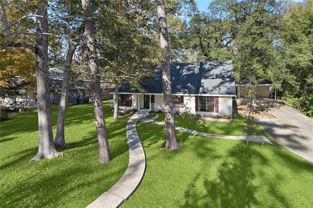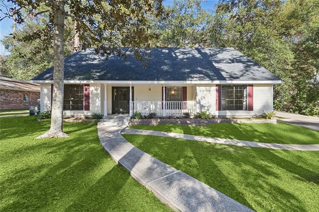 Beautifully updated 4 bed, 2.5 bath home in Mandeville's desirable Golden Glen subdivision, offering contemporary improvements, a versatile layout, and a peaceful, tree shaded backyard. With a fresh price improvement, this property delivers exceptional value in a prime Northshore location. Step into a bright, welcoming living area with engineered wood and tile flooring (no carpet), upgraded lighting, and a classic brick fireplace. French doors lead to a spacious sunroom lined with windows, ideal for a reading lounge, playroom, or creative space. The renovated kitchen includes quartz countertops, travertine backsplash, soft close cabinetry, GE stainless double wall ovens, cooktop, vent hood, peninsula seating, and LED under cabinet lighting. A casual dining area makes everyday meals and entertaining effortless.The main level primary suite features oversized windows, a spa style bath with frameless rainfall shower, dual granite sinks, and a walk in closet. A second downstairs bedroom adds versatility for guests, an office, nursery, or hobbies,with convenient access to the nearby half bath. Upstairs, two generously sized bedrooms share a well designed Jack and Jill bath with separate vanities and updated tile surround. Outside, enjoy a terraced patio, mature trees, a workshop with attic storage, two car carport, and extended driveway.Minutes from City Hall Park, the Lakefront, Tammany Trace, shopping, dining, and the Causeway, this home blends comfort, convenience, and thoughtful updates.