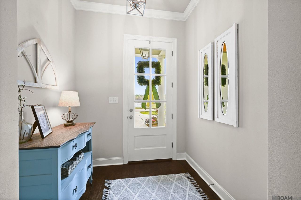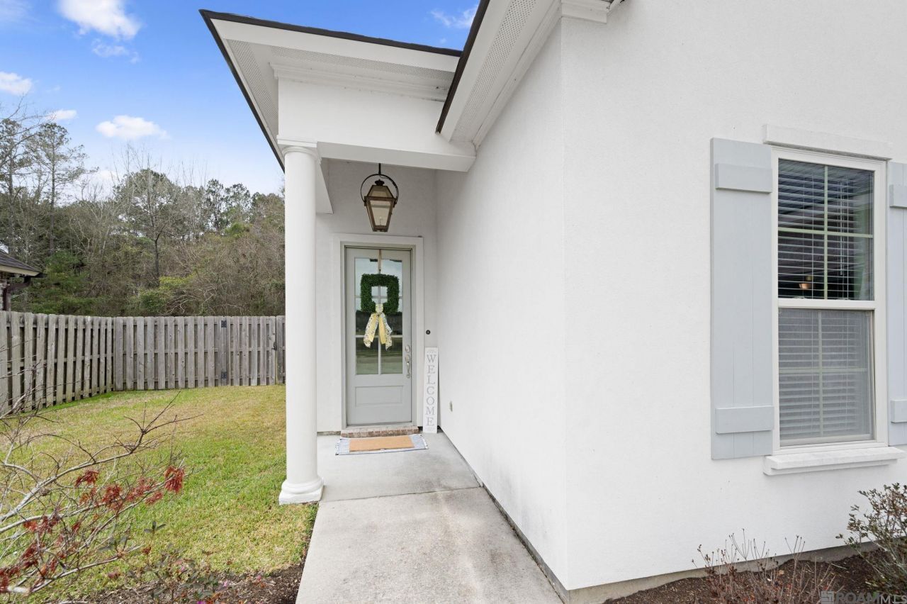 Welcome to this beautifully maintained 4-bedroom, 2.5-bath home in Twin Lakes Estates, offering 2,315 square feet of thoughtfully designed living space. Built in 2017 and backing to wooded green space, this property provides added privacy with no rear neighbors and a beautifully landscaped backyard. The open-concept floor plan features hand-scraped hardwood flooring, custom built-ins, surround sound speakers, and a ventless gas fireplace with granite surround. The kitchen is designed for both entertaining and everyday living with a large island, pendant lighting, 3cm granite countertops, white subway tile backsplash, 36 five-burner gas cooktop, stainless steel appliances, reverse osmosis water system, abundant cabinetry, and a spacious pantry. The primary suite offers a relaxing retreat with a custom tiled shower and seamless glass door, separate soaking tub with granite surround, double vanities, framed mirrors, private water closet, and a large walk-in closet. All additional bedrooms include walk-in closets and feature high-end plush carpet installed in Fall 2022. Additional highlights include a built-in mud bench, spacious laundry room with upper cabinet storage, rear gutters, and professionally maintained landscaping. Located in Flood Zone X and has not flooded. Twin Lakes Estates offers a stocked lake, sidewalks, and 12 acres of community green space. Schedule your private showing today.