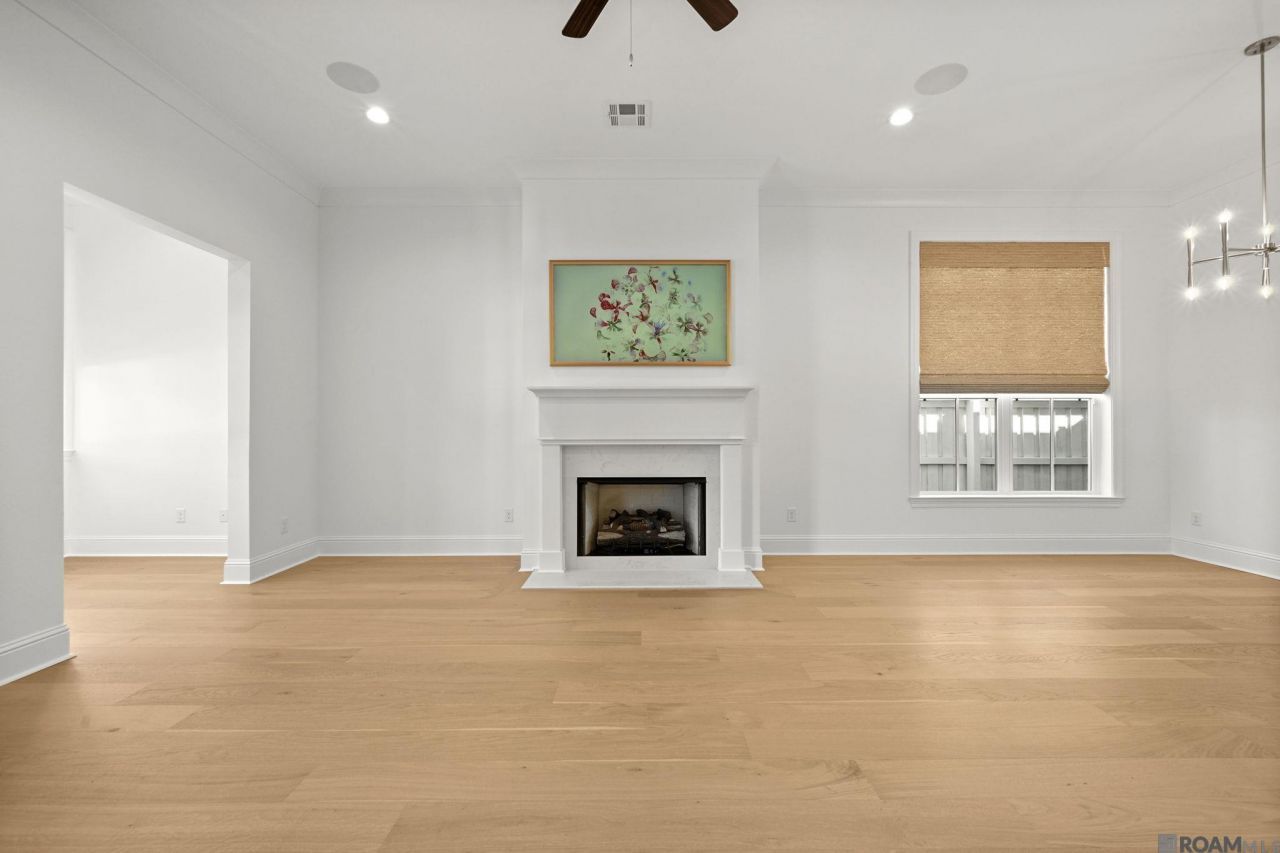 Refined one-story cottage situated on a corner lot in the heart of Rouzan, just minutes from LSU, shopping, and dining. Only one year old, this 3-bedroom, 2.5-bath home features an open living, dining, and kitchen design with engineered hardwood flooring throughout the living areas and a dedicated office or reading nook. The chef's kitchen is appointed with stainless steel appliances, extended upper cabinetry, a Wolf cooktop, shadow quartz countertops, a farmhouse sink, and a bar area with a built-in wine cooler and wine rack. The private primary suite is tucked at the rear of the home and offers a spa-inspired bath with a 6-foot soaking tub, custom tiled shower, dual vanities, and a spacious walk-in closet. Two additional bedrooms are located on the opposite side of the home and share a Jack-and-Jill bath. Upgraded laundry and mudroom spaces include custom cabinetry, countertops, and bench seating, and the covered side porch with outdoor kitchen provides ideal outdoor entertaining space. Home also has a full property fence and security system equipped with 5 exterior cameras. Neighborhood amenities include playgrounds, green space, a clubhouse, resort-style pool, fitness center, and community gardens.