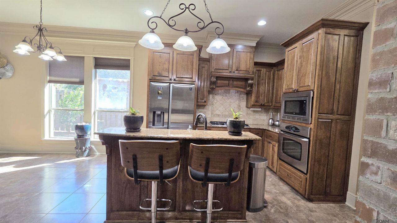 This gorgeous house with 3 Bedrooms, 2.5 Bathrooms in central upscale Village Lake subdivision. It has triple garages, huge covered patio with fireplace, crow molding for whole house, beautiful tray ceiling in master bedroom, nice hardwood floor in living room and dinning room. Kitchen has nice customed cabinets, kitchen island with granite countertop, huge pantry, and full kitchen appliance: refrigerator, wall oven, dishwasher, gas cooktop, microwave, kitchen hood, including washer, dryer. It has huge living room with tall ceiling, built-in shelving & cabinets, fireplace, recess lights. Master bathroom has dual vanities, walk-in closet, a massive soaking tub, and separate shower. Hall bathrooms have walk-in showers, nice vanities. Back patio is covered with fireplace, fully fenced for your privacy and entertainment.
