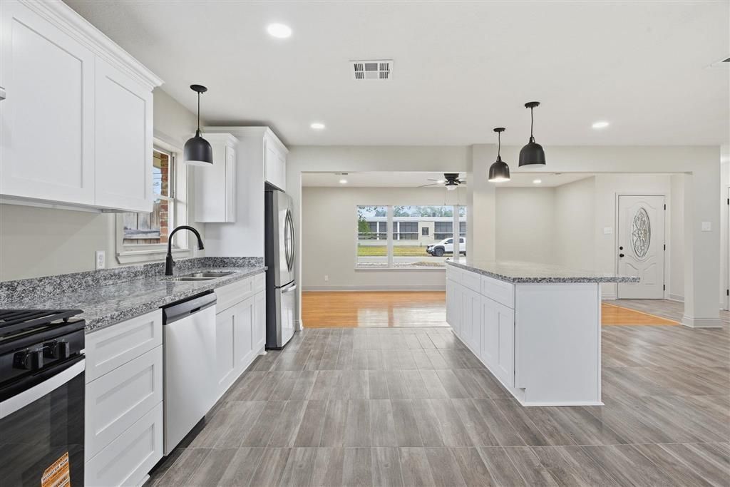Modern and completely remodeled 3 bedroom, 2 bath home in the beautiful Oak Park Neighborhood. Located near schools, hospitals, and shopping. Updates include new kitchen cabinets with granite countertops, ceramic tile floors, beautiful original wood floors, new electrical upgrade, new stainless appliances, new custom built tiled showers, new plumbing fixtures, and new vanities. Outdoor features include a double garage, a fenced in backyard, a storage building/shop in the backyard, new circle driveway in front as well as alley access in the back. Located in Flood Zone X. no flood insurance needed. Move-in-ready and beautifully updated, this home offers convenience, charm, and modern improvements throughout. Owner is a licensed Broker