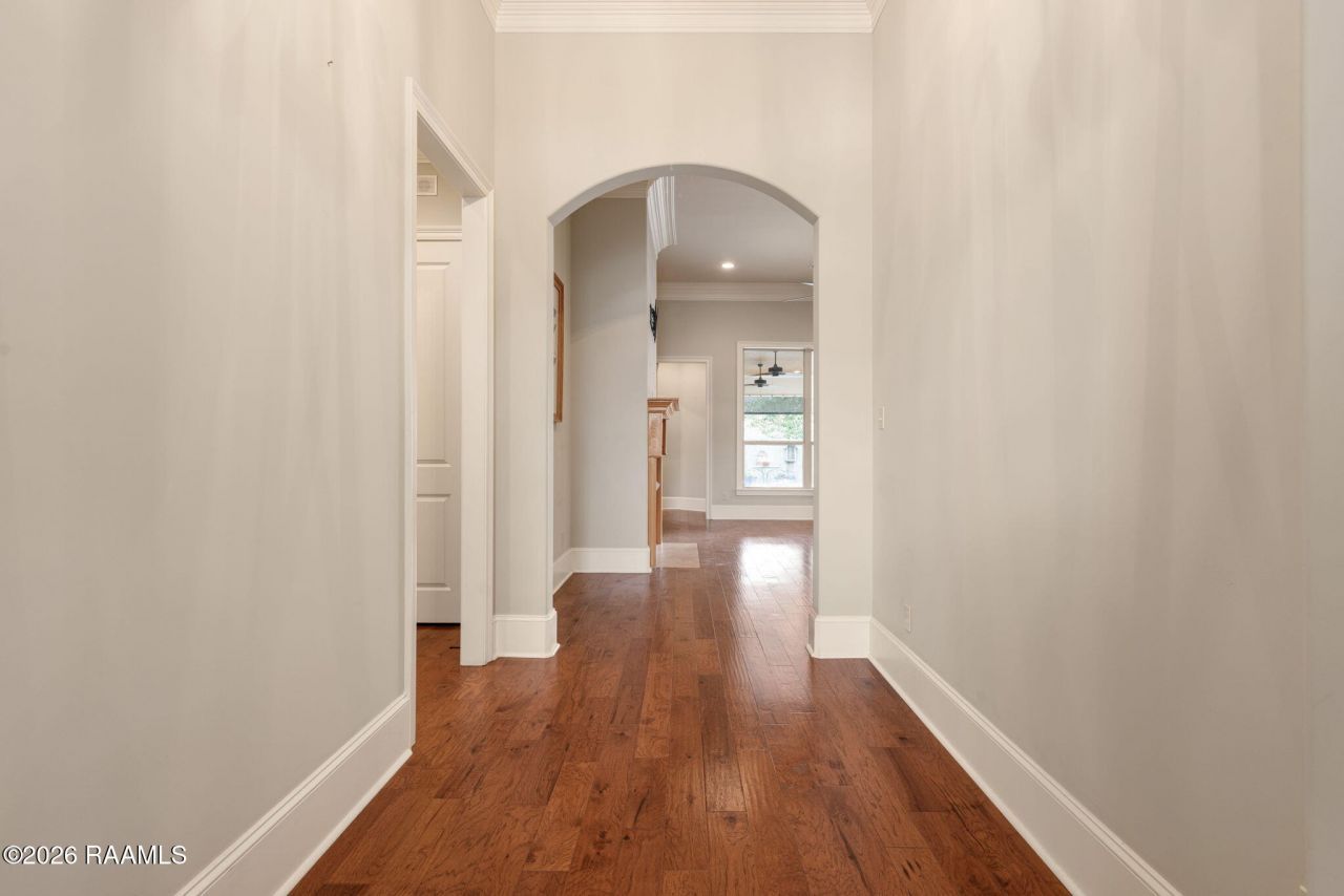 Located in the highly desirable Grand Pointe subdivision in the heart of 70508, this one-owner home was custom built by Heritage Custom Builders at the end of 2013 and showcases quality craftsmanship throughout. Designed with a split, open floor plan, the kitchen truly serves as the hub of the home. Custom handmade real Cypress cabinetry, stainless wall oven, gas cooktop, oversized walk-in pantry, and abundant prep space make this kitchen both stunning and functional. The dining room flows seamlessly into the living area, creating the perfect setting for entertaining or everyday living. Soaring 12-foot ceilings, triple crown molding, wood and travertine flooring, and a ventless gas fireplace elevate the main living space with warmth and elegance. The primary suite is a retreat of its own, featuring a tray ceiling, generous layout that accommodates California king furnishings, a large custom walk-in closet with built-ins, dual vanities, private water closet, separate tiled shower, and a soaking tub. Every bedroom includes a walk-in closet with built-in storage -- a rare and thoughtful feature. Function meets convenience at the garage entry with a built-in drop zone, plus a spacious utility room complete with folding area, cabinetry, and soaking sink.Outdoor living is just as impressive. Sellers extended the patio with additional concrete and created a fully equipped outdoor kitchen featuring a wood-burning fireplace, gas grill, mini fridge, and custom Cypress hood vent -- ideal for year-round enjoyment. This home has never flooded and is located in an area where flood insurance is not required.A beautifully maintained property offering timeless finishes, exceptional storage, and true indoor-outdoor living in one of Lafayettes most sought-after neighborhoods. There is a community swimming pool, stocked pond, walking trails and playground!