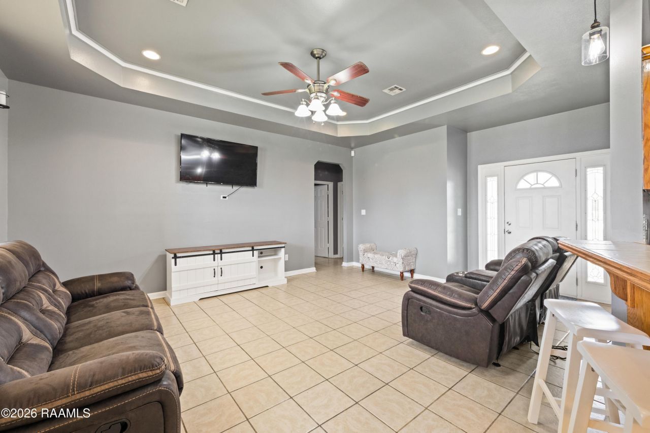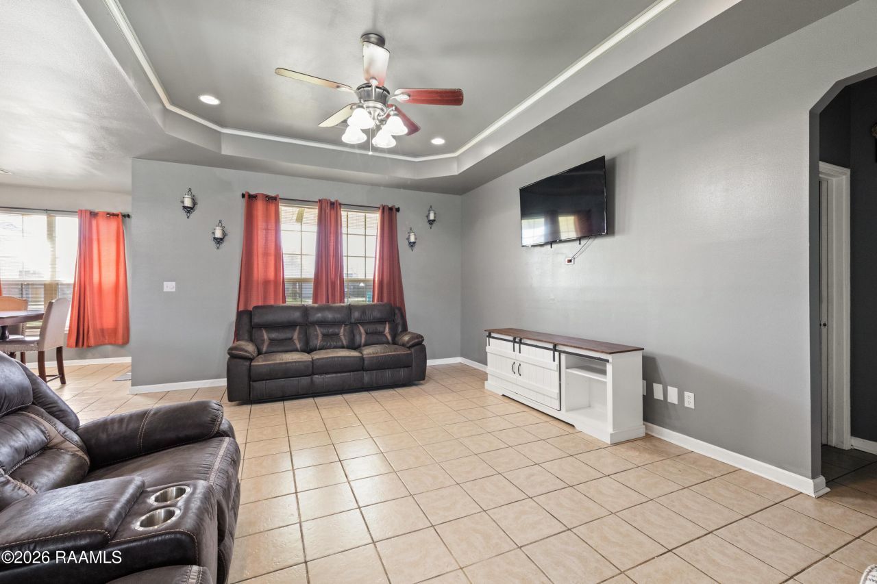 Welcome home to this 3-bedroom, 2-bath gem offering 1,532 sq. ft. of thoughtfully crafted living space! From the moment you step inside, youll love the soaring 9 ceilings, elegant crown molding, and stunning tray ceilings in both the living room and primary suite that add architectural charm and sophistication. The kitchen showcases gorgeous cabinetry with ample storage, perfectly complementing the open layout ideal for entertaining or everyday living. Ceramic tile flooring throughout the home provides durability and easy maintenance while creating a seamless, polished look. The spacious primary suite offers a relaxing retreat, while two additional bedrooms provide flexibility for guests, family, or a home office. Step outside to enjoy the covered patio--perfect for morning coffee or evening gatherings. Complete with a double garage and remote access, this home blends style, comfort, and convenience in one impressive package.