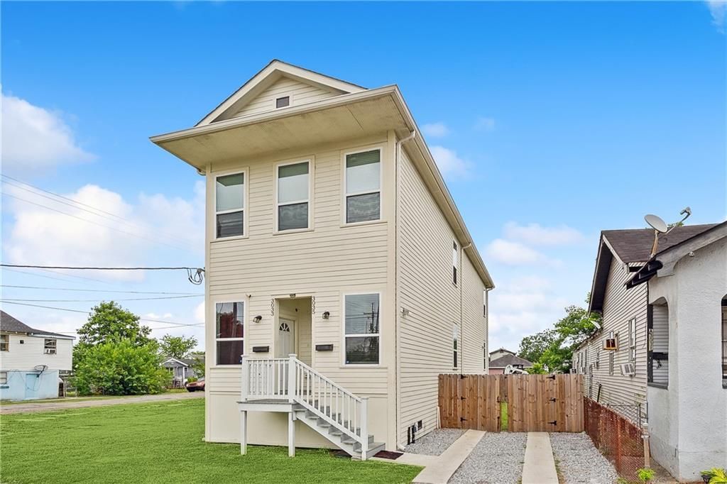 This 6-years young top and bottom side-hall style shotgun double in the historic 7th Ward (X Flood Zone) is awaiting addition to YOUR portfolio. Neutral grays with 9+ ft ceilings throughout and laminate and ceramic tile throughout. Quartz counter tops and SS kitchen appliances remain as well as washer & dryer in upstairs unit. Fenced backyard and off-street parking. Close to major thoroughfares--Claiborne, Elysian Fields--with easy access to I-10 East or West, I-610, Uptown or back of town. The upper unit is tenant-occupied and showings can be arranged if you're interested after seeing the lower unit.