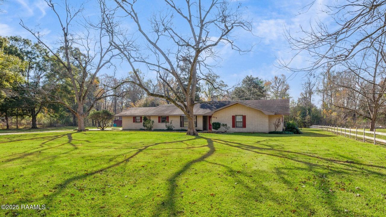 Looking for some acreage with a pond? This large home on three acres , partially wooded with a pond is south of Opelousas in desirable Magnolia Ridge, off of Hwy 182 near the Sunset exit. Gas is available. There is a gas fireplace, gas connection for the kitchen, and gas hot water heaters and central heat. The home is approximately 2300 sq ft. The front foyer entrance leads to an open kitchen/breakfast room area, living and dining area with a double sided fireplace, a large laundry area with a full bath, and three bedrooms and two more baths. The master suite has a separate vanity, and a large walk in closet. The flooring is bamboo, tile and wood laminate. This home has lots of windows to bring in natural light. Only one small dining room has freshly cleaned carpet. All rooms have been freshly painted with the exception of the laundry room. The living area has French doors onto the back yard. The backyard has a covered patio, a gazebo, and a large two story barn/storage/ workshop. This big two story outside building has electricity and water. The property also has a large kennel for dogs. The large front acreage is landscaped with very mature trees such as magnolia trees, pecan trees and other plantings. The property is very private at the end of the street on the right. Fish in your own pond! This is a great place for a family to explore and enjoy. Make an appointment today!