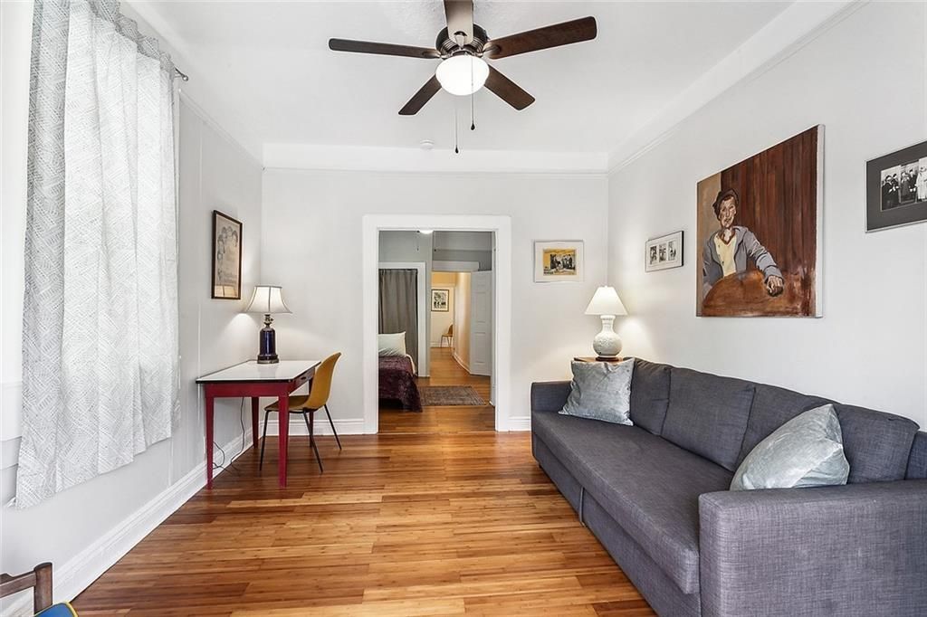 This light-filled second floor apartment in the heart of Mid City features two private bedrooms at either end of a generous shotgun layout + a large front office. Bedrooms are separated by an airy living room, newly renovated bathroom, and sunny eat-in kitchen with stainless appliances and stone countertops. Includes in-unit washer/dryer, central air, a fenced-in back patio, and serene front porch where you can watch the world go by. Off-street parking for one-two cars. A short walk to nearby VA/LCMC medical complex, City Park and Bayou St. John, the Lafitte Greenway, multiple grocery stores including Trader Joe's and Whole Foods, and SO MANY wonderful restaurants, bars, and coffee shops! Three blocks to the Canal Streetcar line. Water and trash service included. Pets welcome! Flexible lease terms of 6 to 12 months. Unit is offered furnished for terms less than 12 months.