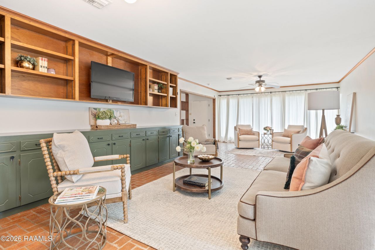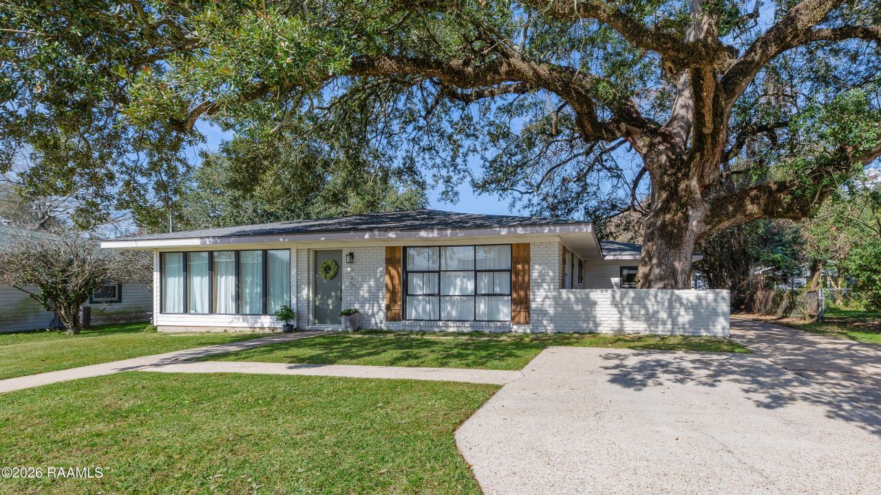 Looking for a one story home with character with great access to the center of Lafayette and at an affordable price within minutes to Moncus Park and UL-- welcome home! Situated in desirable Holden Heights this three bed/two bathroom home with mid-century modern character is move-in ready and ready for new owners. Upon driving up to the home you will notice the larger lot and wall of windows allowing for natural light to pour into the interior space. Walking into the home you are met with beautiful brick and wood floors, a tasteful neutral color palette and the option to create the spaces for your needs. Need an office setup? Theres room for it. Need a hobby space? Theres room for it. Need a nook to curl up and read a book while watching the rain? Room for it! On one side a formal living room/office space/sitting room space is adjacent to the living room and on the other side is a formal dining room space. Tired of open concept? This home offers enough privacy in the spaces where the TV does not have to get louder if you are doing the dishes. Kitchen offers a stainless gas range, dishwasher, microwave, refrigerator and a contrast of black/white colors to enhance the character. Primary bedroom is spacious with dual closets. Secondary bedrooms are spacious with one of them having an en suite bathroom. Another move-in ready feature - washer and dryer stay! No carpet! Venture outside for a large backyard with rear yard access and room to park a boat or setup a shed. Bonus: no HOA! Lafayette Roofing has checked out the roof and estimates it to be 8-9 years old. HVAC - 2021. Minutes to Cajun Field, UL, downtown, and all that Lafayette has to offer! Schedule your showing today!
