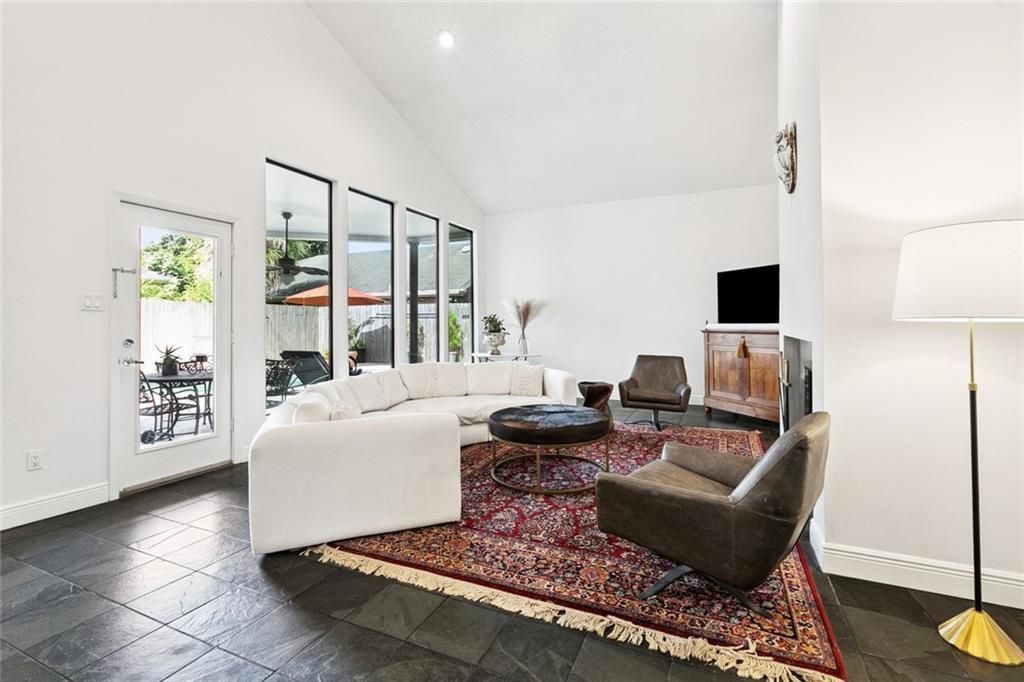 Experience a striking contemporary 4-bedroom home on slow part of Severn Avenue by the lake, where bold architecture, soaring ceilings, and modern design create an unforgettable living experience. Centered around a serene pool courtyard, the layout offers seamless indoor?outdoor living with expansive windows that bathe the home in natural light. The dramatic living room features slate-style flooring, a tall fireplace wall, and a full wall of glass overlooking the pool?bringing in both views and warmth. A spacious dining area, mirrored bar, and signature circular architectural cutouts add style and dimension. The kitchen is bright and functional with painted cabinets, a new tile backsplash, Caf appliances, and a water filtration system. Upstairs, the flexible layout includes a large exercise room, generous guest bedrooms, and a standout primary suite with two walk-in closets and private balcony access. The downstairs bedroom offers convenience for guests, office use, or multigenerational living. The home's modern faade, gated entry, and clean landscaping create rare curb appeal in Metairie, along with an additional gated green space in the back. Located in the vicinity of Lakeside, Clearview, Veterans, parks, restaurants, daily conveniences, and the lake, this address offers both function and lifestyle. Recent upgrades include: new upstairs and kitchen windows, three skylights, two newer roofs (one rubberized), updated HVAC systems, two new water heaters, new wood flooring, updated baths, and a refreshed pool deck with new equipment?adding comfort, efficiency, and ease of maintenance. With beauty, functionality, and smart improvements throughout, this contemporary home offers exceptional value in the heart of Metairie.