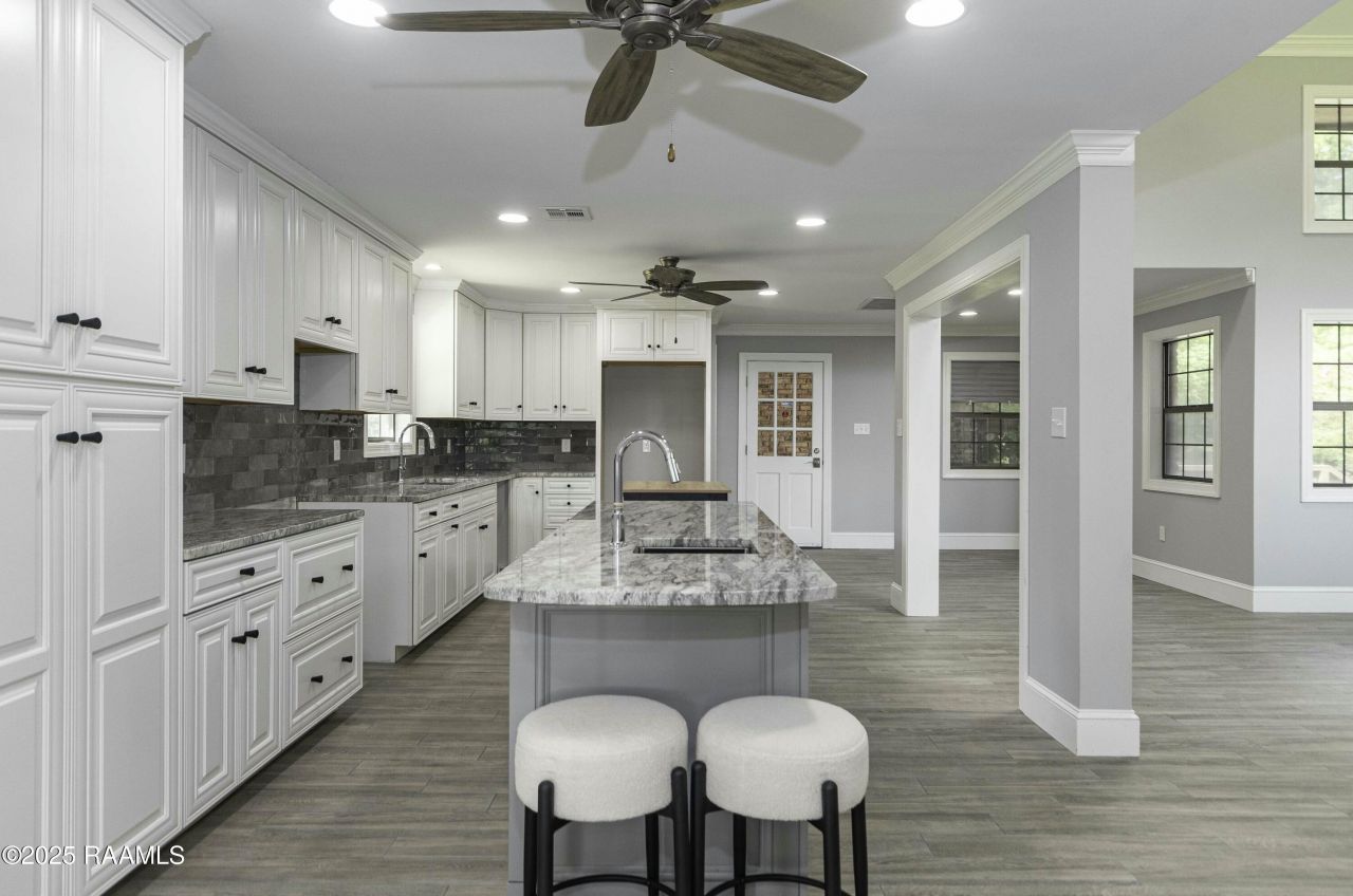 Imagine waking up to the serene views of Bayou Teche every day in this fully remodeled home located at 3936 Bayou Blvd. in New Iberia. Boasting over 2,900 square feet of living space, this three-bedroom, three-bathroom beauty is sure to captivate you with its fresh paint and new flooring throughout.Upon entering the home, youll be greeted by a grand cathedral ceiling that adds an air of sophistication and elegance. The open concept living area seamlessly connects with the dining room, making it perfect for hosting family gatherings and dinner parties.The kitchen has been completely transformed, featuring new granite countertops and stylish cabinets that provide ample storage space. A bonus room offers versatility for various purposes, such as a home office, game room, or additional living space.Each of the three bedrooms is generously sized and offers a tranquil retreat for rest and relaxation. The master suite is particularly impressive, featuring a walk-in shower and spacious closets.For those who love to keep things organized, this home boasts a huge laundry area, ensuring that youll never have to worry about piles of dirty clothes taking over your living space.Outside, youll find covered RV parking area and a deck off the back of the home, providing the perfect spot to unwind and enjoy the stunning views of the bayou.This home offers a unique blend of modern amenities and natural beauty, making it an ideal choice for anyone looking to embrace the serene lifestyle of New Iberia. Dont miss your chance to make this beautiful home yours!