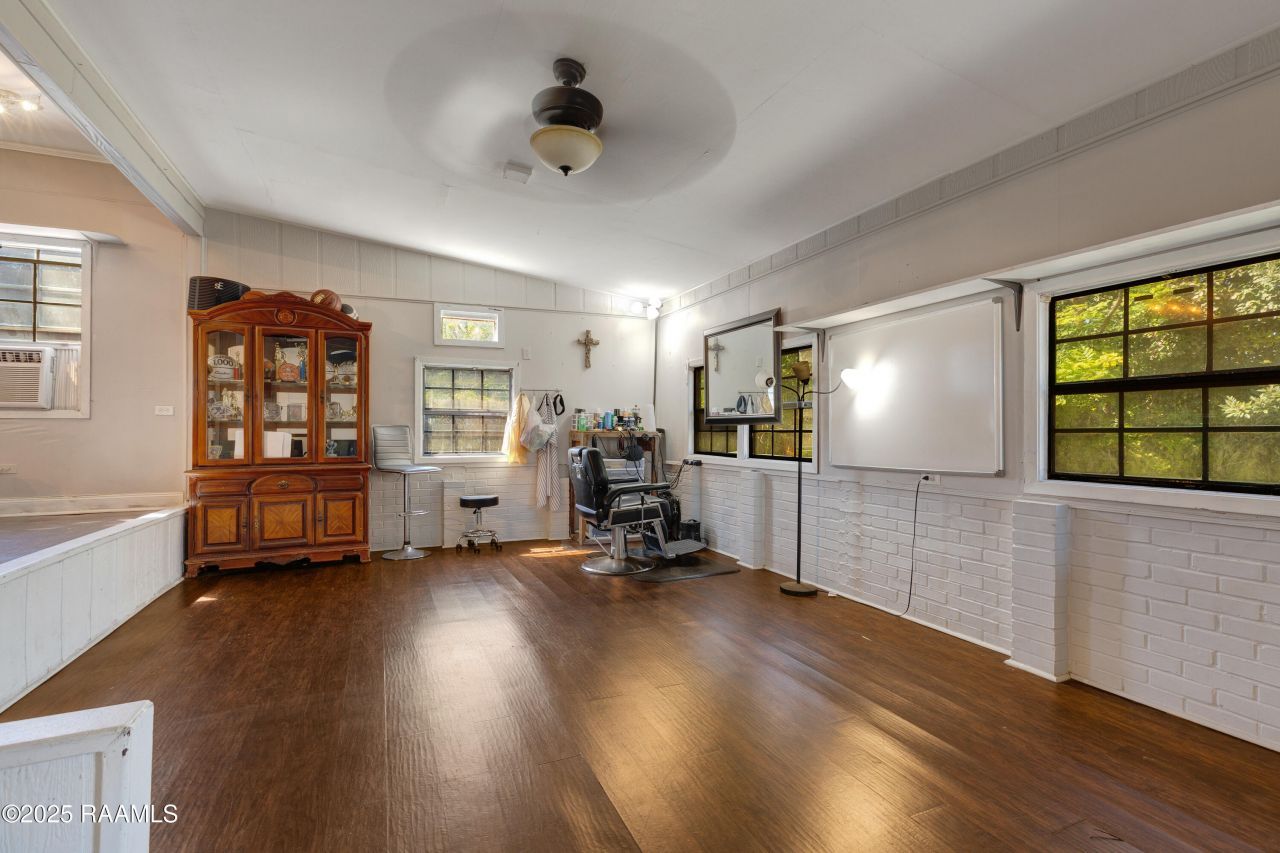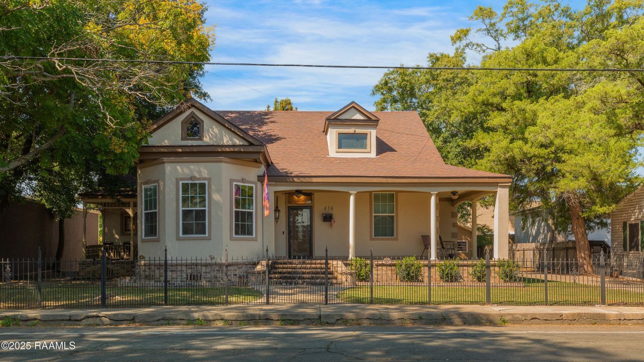 This beautiful 4 bedroom, 2 1/2 bath Victorian home has all the charm of yesteryear with modern amenities. The 2020 roof has 30 year architectural shingles, 2023 hot water heater, HVAC inside components were replaced in 2022. High ceilings, no carpet, 2 original fireplaces, granite counters, beautiful original wainscoting, and newer windows are in most of the home. An extra large living room/den is located off the kitchen. The kitchen has granite countertops, a gas stove, two pantries and a door that opens to the laundry room that has lots of storage. The primary suite has a fireplace, private access to a separate porch and two closets. The primary remodeled bathroom has a large separate shower, a separate tub, a dual vanity and an original stained glass window. The front porch wraps around the front of the home and is accessible from two bedrooms. There are storm doors, an alarm system, and updated windows. The home and yard are completely fenced and a beautiful wrought iron fence and gate are across the front of the home. Included in the sale is a detached 500 sq ft home with private parking. Flood insurance is not required.