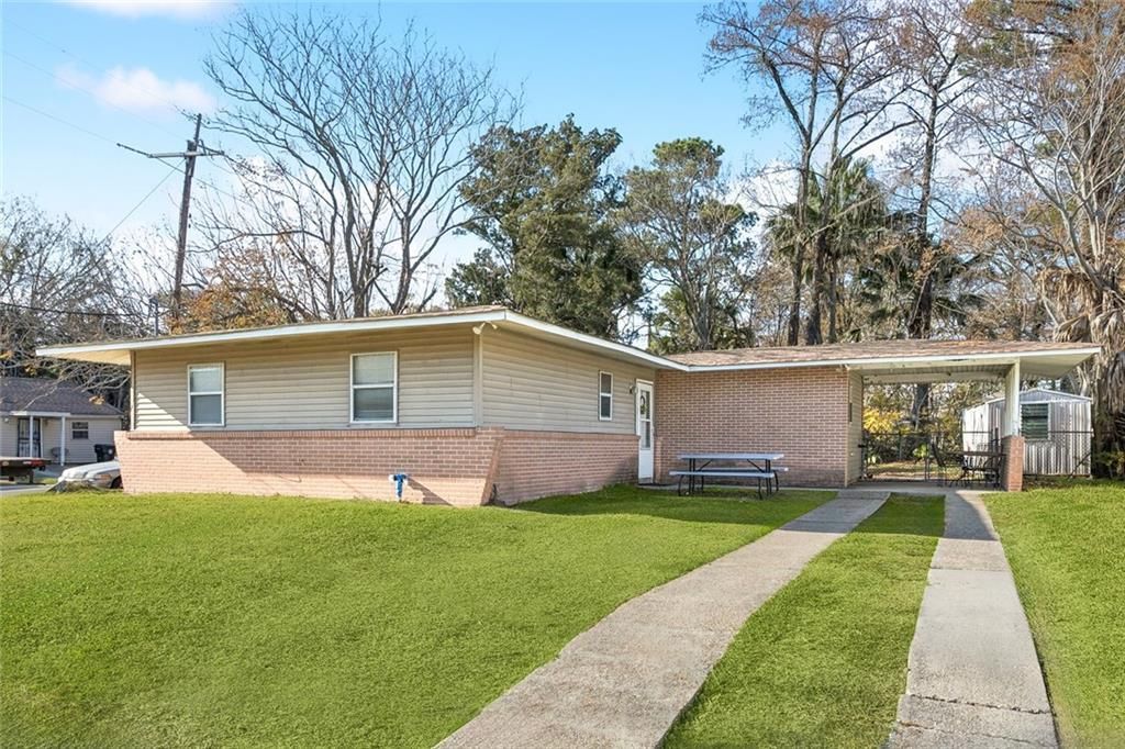 Gentilly Woods charmer on an oversized corner lot with easy access to EVERYTHING! This precious 3bd/1bth home is located just 4 mins to Southern University and Pontchartrain Park with easy access to shopping and restaurants! This home features easy to maintain tile flooring throughout. Welcoming foyer entrance opens to cozy living room and dining room. Galley kitchen complete with abundant wood cabinetry, ample counter space, double sink, pantry and generous storage. Large bedrooms with closets. Bathroom features single vanity and custom tiled tub/shower combo. Oversized corner lot with carport and circle drive through backyard offers ample off-street parking. Oversized concrete patio, great for entertaining! Storage shed. Partially fenced rear yard. Flood zone X - no flood insurance required but sellers have an assumable policy at $797/yr if desired. Currently tenant occupied at $1500/month, section 8 approved home. Fantastic opportunity to expand your rental portfolio OR make this charming home your own! This home qualifies for UP TO 100% FINANCING WITH NO PMI, AND UP TO $6000 IN GRANT FUNDS ASSITANCE through preferred lender program for owner-occupants. Make it yours today!
