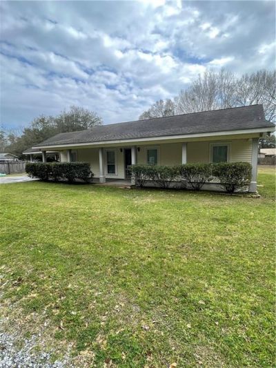 Nestled off of Hwy. 434 in Lacombe, on its own private driveway, is this spacious country home on a half acre. The floor plan accommodates a primary suite on one side of the home and a bedroom and bathroom on the other side of the home. In the center is a large family room and dining area. The spacious kitchen has lots of cabinets and counter space and a large pantry. The adjoining laundry room exits onto the covered carport. The primary bedroom is not only large, but the ensuite has extra space for a dressing area/vanity/workout space, or even an office. The home also has a large backyard storage shed, covered front porch, and small utility room off of the carport. Available on March 1. Please use the attached Louisiana application for everyone over 18 years of age. After the application is approved then you will receive a link for credit and background.
