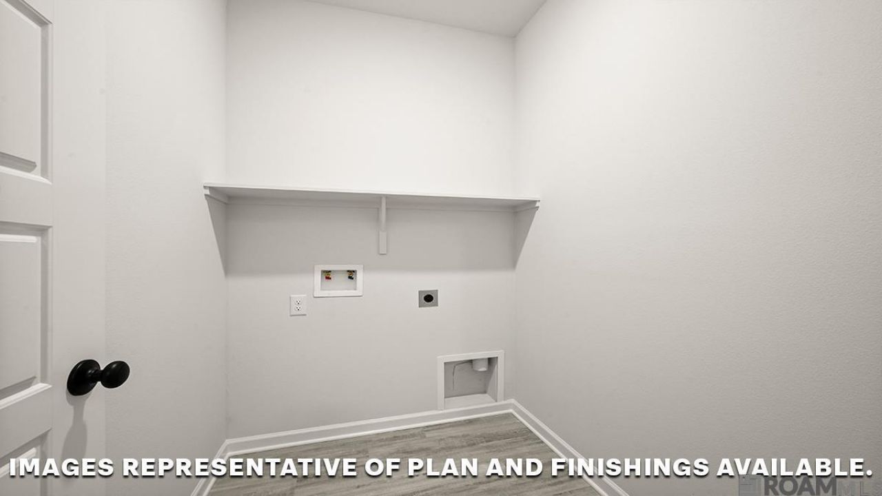 Welcome to the Eastwood floorplan, a single-story home available in Brook Hollow, a new home community in Zachary, Louisiana. There are 3 impressive exteriors to choose. Step inside 4-bedroom, 2-bathroom residence to find 1,555 square feet of living space. The layout includes two bedrooms, a guest bedroom, and a hallway leading to another bedroom with the HVAC system and linen closet. The open concept living area features a well-equipped kitchen with shaker-style cabinets, gooseneck pulldown faucets, stainless-steel Whirlpool appliances, and 3 cm granite countertops. A large corner pantry and separate laundry room add to the functionality of the space. The dining room is conveniently located next to the kitchen, while the living room is nearby, ensuring a seamless flow between the two areas. All bedrooms are provided with cozy carpeting and a convenient closet. Whether you need a place for entertainment, organization, welcoming guests, relaxation, or fitness activities, you can be sure of feeling comfortable and content. Situated at the rear of the residence, the primary bedroom comes complete with its own en suite. The primary bathroom showcases a dual vanity, a tub/shower combination, a generous walk-in closet, a separate linen closet, and a separate water closet. Get in touch with us now and schedule a tour of the Eastwood today!