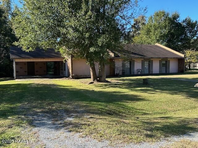 Custom built French Country designed home with solid block walls and Old Chicago brick on the exterior as well as its wood burning fireplace and hearth on the interior. Youll get the feel of privacy and seclusion when you arrive near the end of this one road neighborhood with NO thru traffic and a cul-de-sac at the Vermilion River. The home was originally built with 2 bedrooms and 2 full baths, but can easily be, and was once utilized as a 3 and/or 4 bedroom within the large sunroom, living room or den. In addition, it features a central kitchen and dining area and a large laundry. The double carport has a large, attached workshop with good storage and solid walls. The mostly wooded backyard features a large open deck and several mature cypress and other trees throughout.