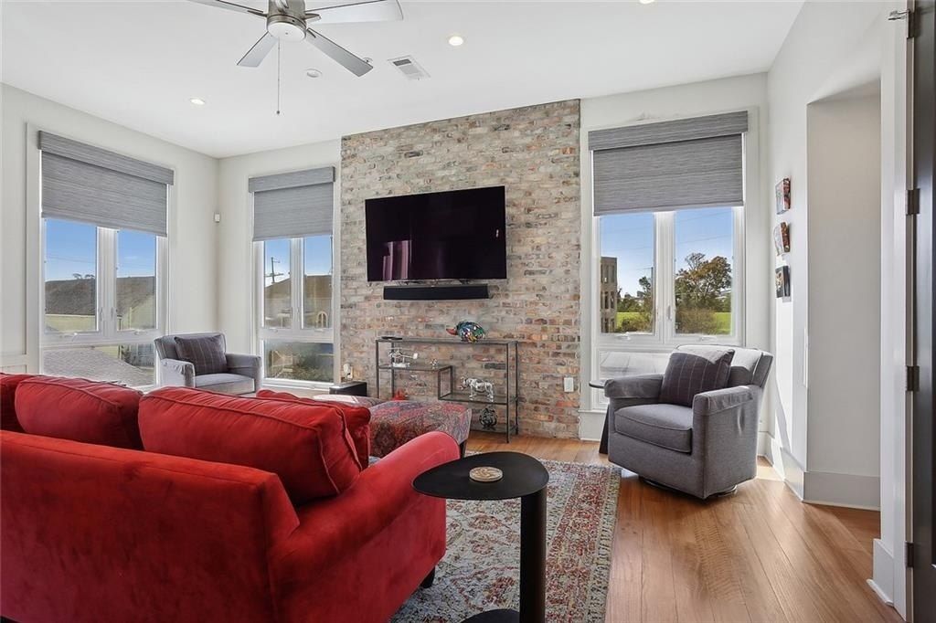 Live in New Orleans Historic Riverbend Neighborhood!! Gorgeous condo development of identical twin residences on Maple Street. This unit has 2 bed/2.5 bath, furnished with spacious, light filled rooms with wood floors, quartz countertops, modern tile baths and private roof deck with spectacular view of the river traffic on the Mississippi River & Riverbend rooftops! Comes with one secured, assigned off-street parking space- see attached parking plan. Walk to your favorite Riverbend shops and restaurants, bike on the River Bike path...steps to Carrollton/St. Charles streetcar. Please note all furniture, linens, dishes, utensils, window treatments & appliances are included in sale. Artwork is not included but negotiable. Please note this is a multi-level unit with stairs accessing all 4 levels with common elevator access to 3 levels. Parking is on first level, Bedrooms are on 2nd level, kitchen/living on 3rd level and roof deck on 4th level. Building has elevator that accesses the parking, 2nd & 3rd floors. A Must See!